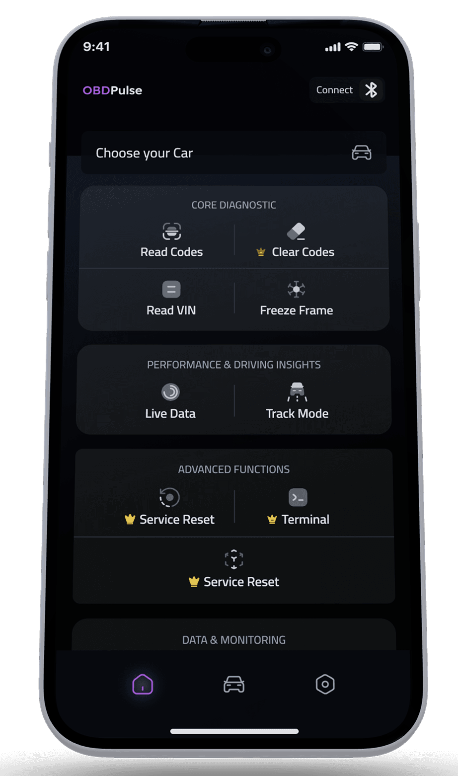 Download the app and start diagnosing, All you need is a Bluetooth OBD2 adapter — no cables, no hassle.